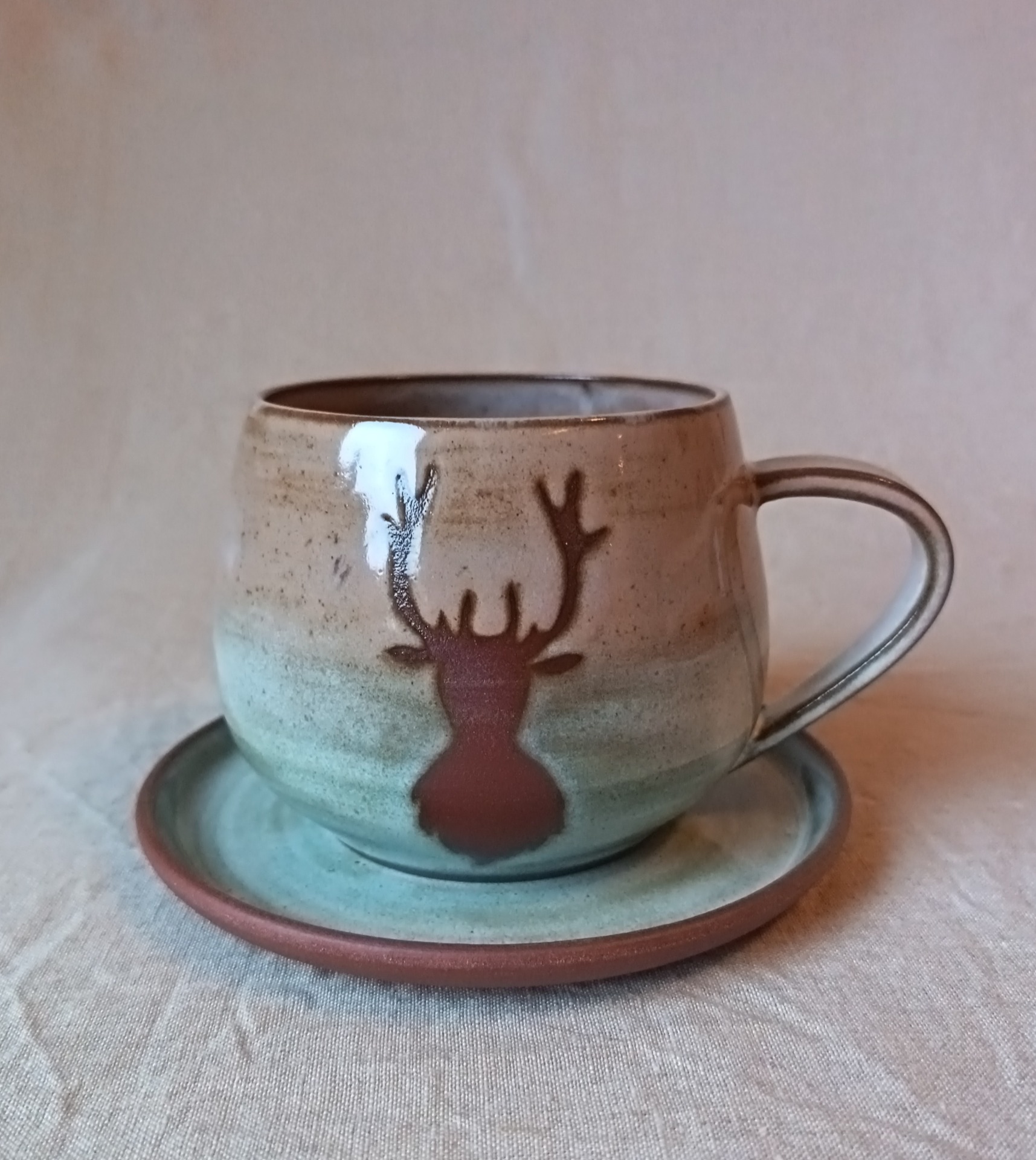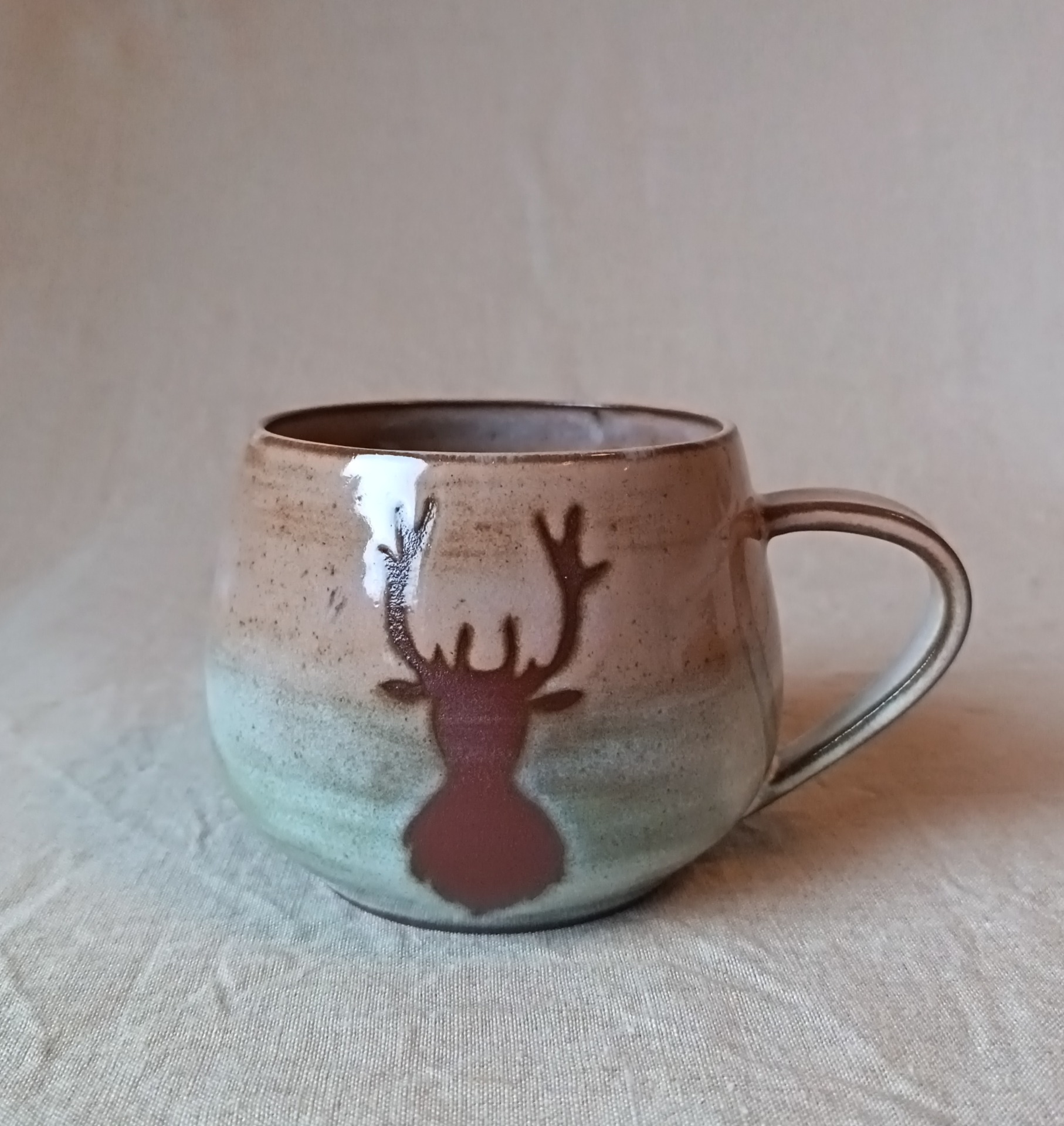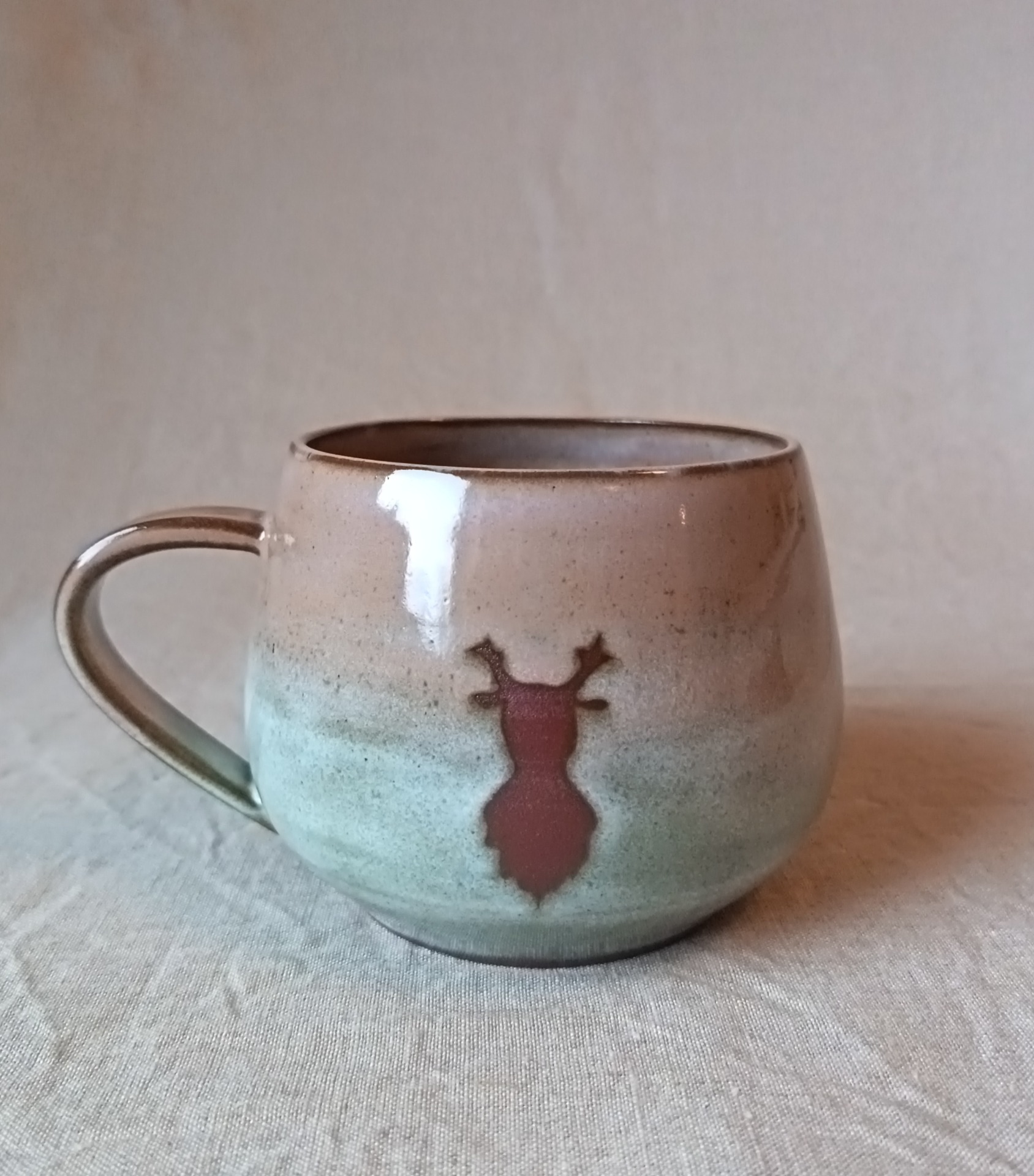 Lite fat i brun steingodsleire. Melert grå/rosa glasur. Håndddreid og dekorert.